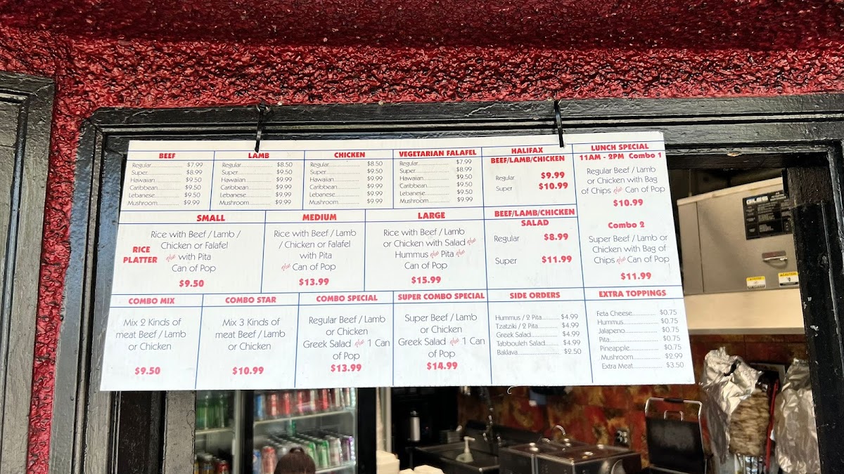 “ The chicken and beef donairs are really good. The regular size is huge so, you can have 2 meals unless you are very hungry. Once I ordered the chicken platter and I found the portions small although you get a ton of rice. I recommend the donairs. ”